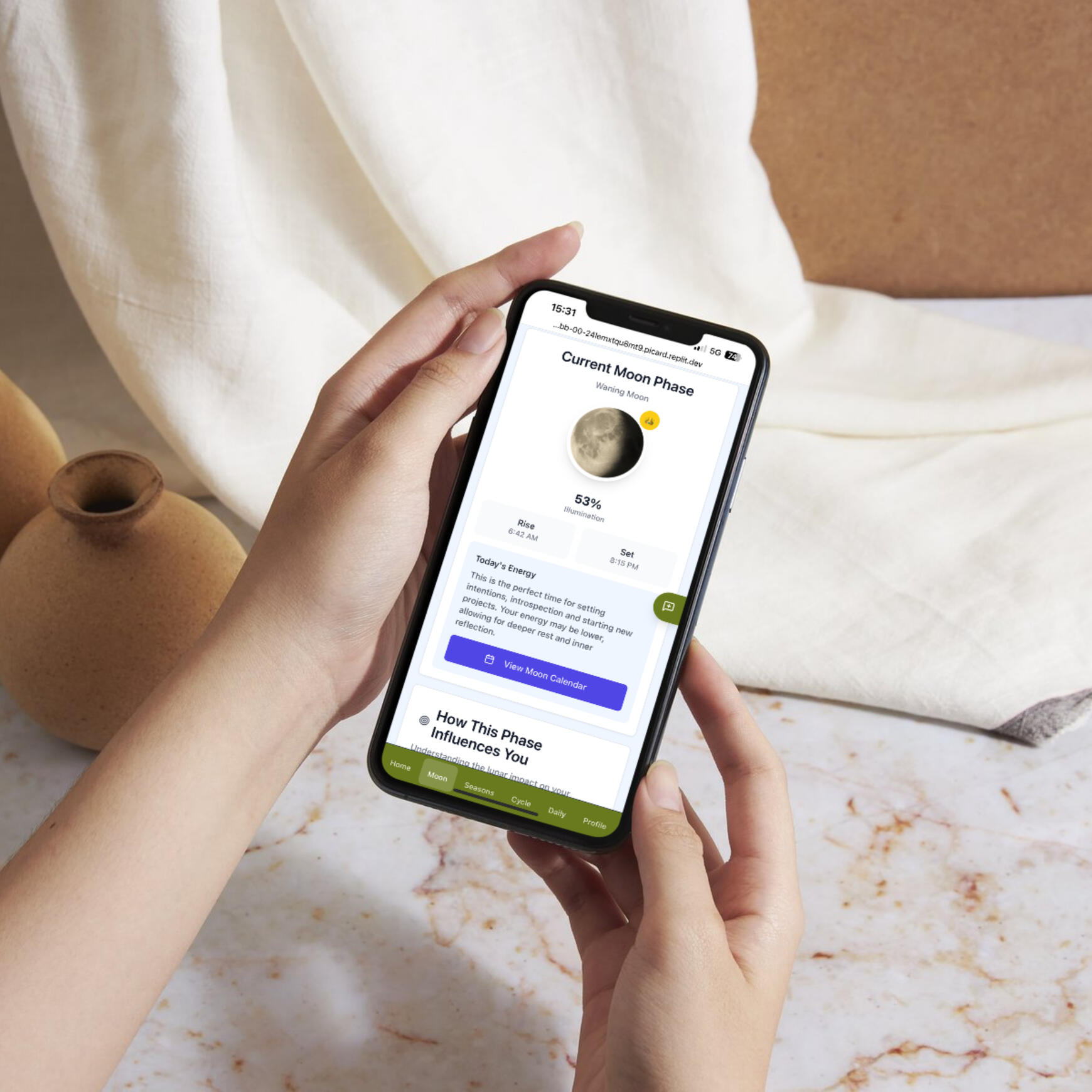 I looked into natural cycles, the moon, my hormonal rhythm, and even the Chinese body clock. Each piece gave insight — but they all lived on separate platforms.I wanted one place that brings it all together.